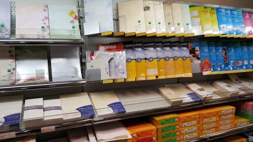 - Papeterie, 4m lange Theke mit Karten für jeden Anlass